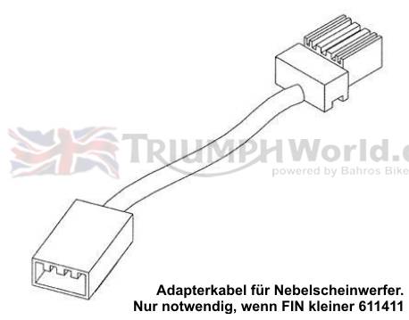 Anschlusskabel / Pluginkabel zur Montage der LED Nebelscheinwerfersysteme A9838017 an Tiger 800 & XC mit FINs kleiner 611411 sowie von FIN629457 bis FIN630723.