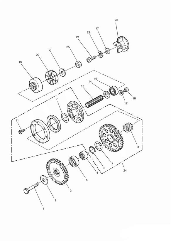 | 24 | ![]() T1221025 | ANLASSERFREILAUFKUPPLUNG 51 Z | 1 | Use with 15 tooth starter gear |