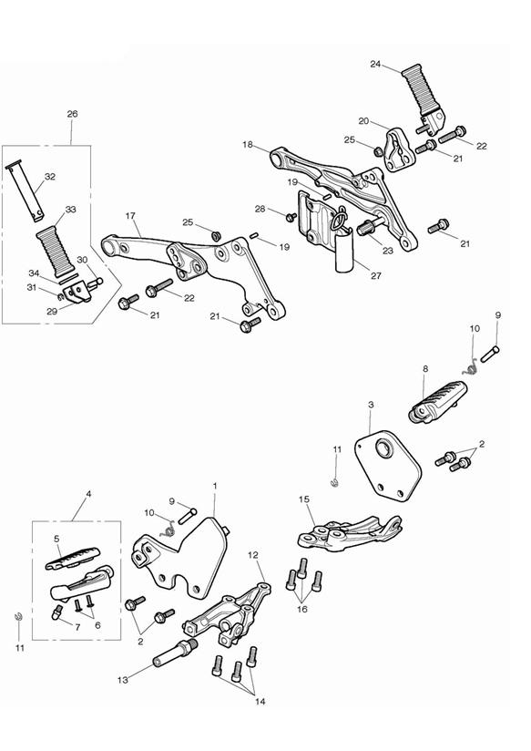 2 | ![]() T3205000 | Kit, B/Footrest Brkt Bolts | 1 | > 519667 - N/A to Special Edition (Kit contains all front & rear footrest bracket bolts) |
