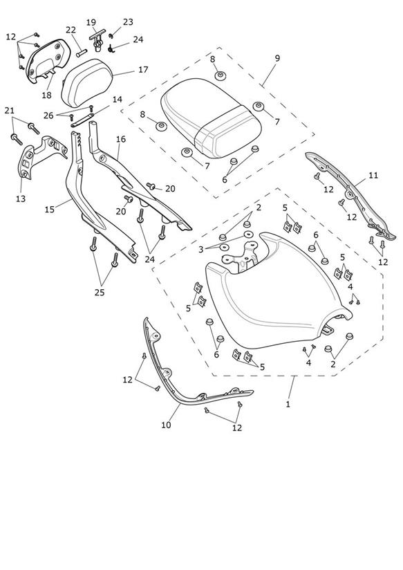 | 17 | ![]() T2310105 | Pad Assy, Pillion Backrest | 1 | |