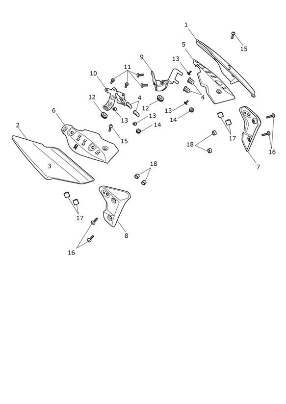 2 | ![]() T2316027-NW | Fairing Panel & Pad, LH, Crystal White | 1 | Comprises Panel, Foam Pad & Decal |