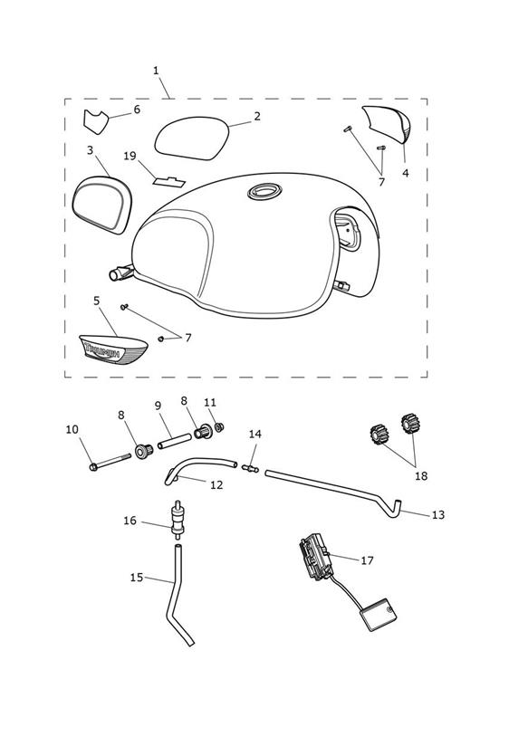| 5 | ![]() T2401661 | Badge, Fuel Tank, RHS | 1 | For Meriden Blue Tanks - BB9465 > |