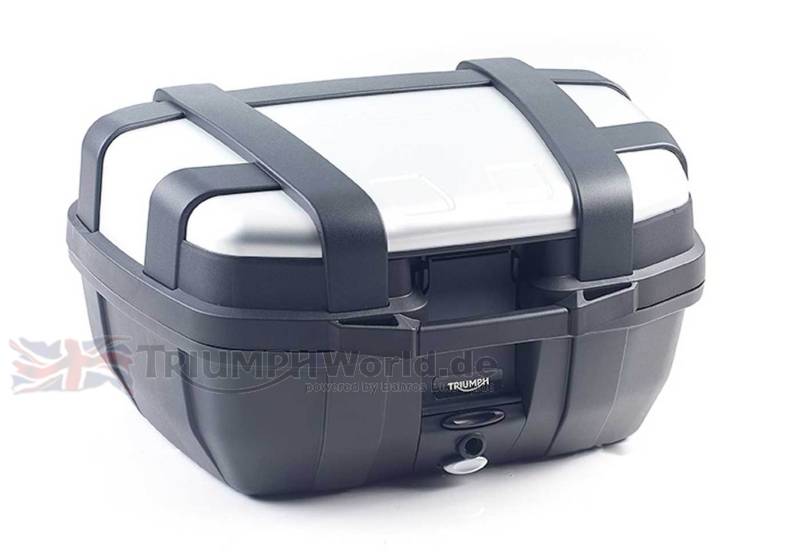 Diese wetterfeste 52Liter Top Box besitzt eine Alublende fasst zwei Integralhelme. Auch diese Box bietet - wie alle Triumph Gepäcksysteme für die Tiger 900 Modelle - ein Einschlüssel-System.
