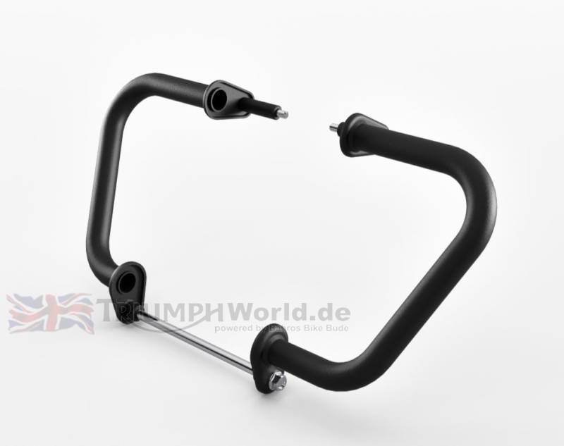 Die oberen Motorschutzbügel / Tankschutzbügel von Triumph sind aus Stahlrohr gefertigt und mit einer edlen schwarzen Strukturlackierung versehen. Sie bieten zusätzlichen Schutz im Falle eines Sturzes und ergänzen das Design des Motorrads. Sie können allein oder in Verbindung mit den unteren Bügeln montiert werden.