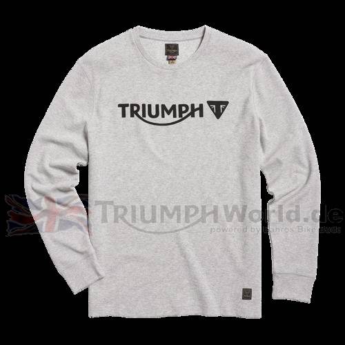 Leichter, grau-melierter Pullover mit großem Triumph-Schriftzug und Logo vorn.