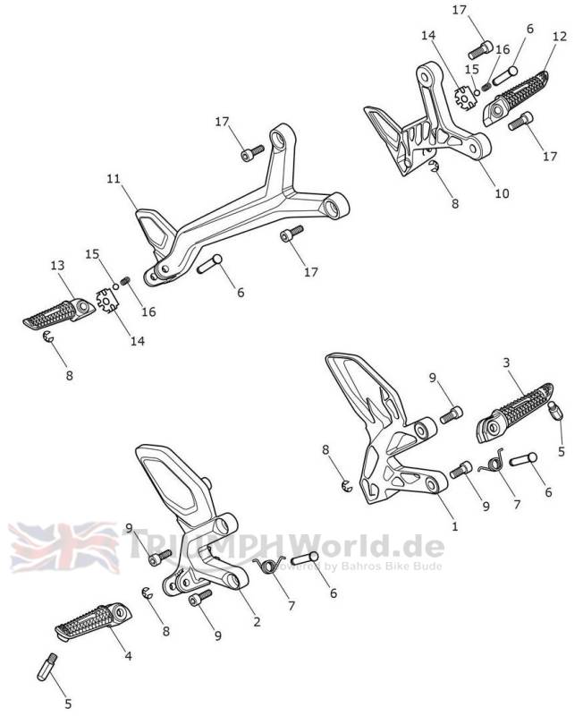 | 12 | ![]() T2088202 | Footrest, Rear, LH | 1 | |