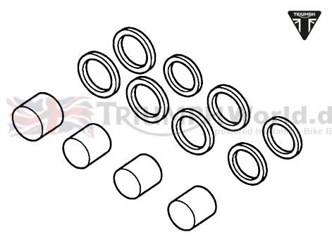 Information: Reparatursatz für eine vordere Bremszange bestehend aus neuen Kolben und Dichtungen wie abgebildet